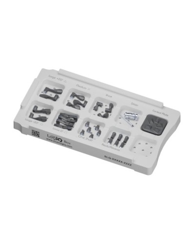 Zestaw zawierający 14 flag skanujących iQ, 6 flag jednorazowych iQ, 6 flag odwrotnych iQ, 1 płytkę kontrolną iQ, śrubokręt i końcówkę (sześciokątną 1,25) oraz tacę ScanLogiQ.